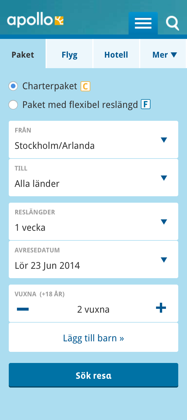 Apollo have a main charter product for set packages but also a flexible self packaging trip planner for shorter city trips. This product is on a different booking engine but the goal was to create a seamless booking experience from search to ancillary services to payment on top of this white label product.